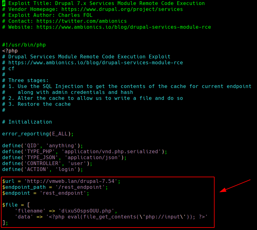 Lo renombraremos a exploit.php y utilizando vim revisaremos su contenido.