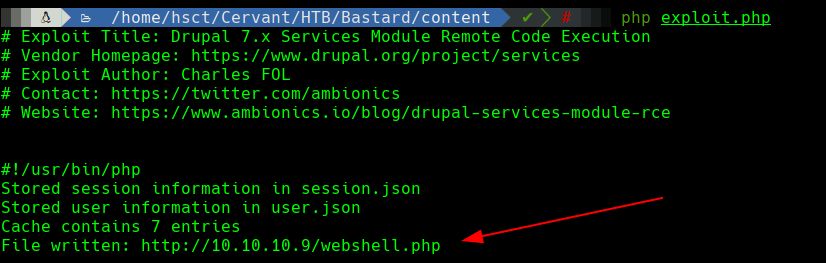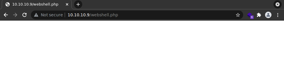 Nos indica que nuestro archivo fué escrito a la ruta http://10.10.10.9/webshell.php. Vamos allá y veremos que efectivamente el recurso existe.