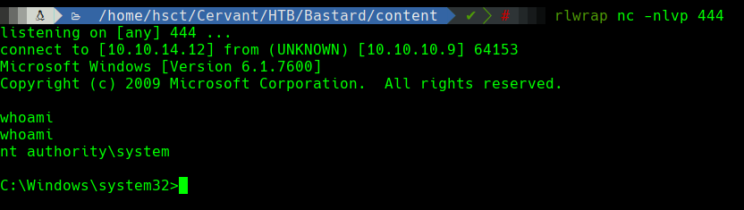 Ya estaríamos como el user NT AUTHORITY\SYSTEM, por lo tanto, esta máquina ya se encoontraría rooteada.
