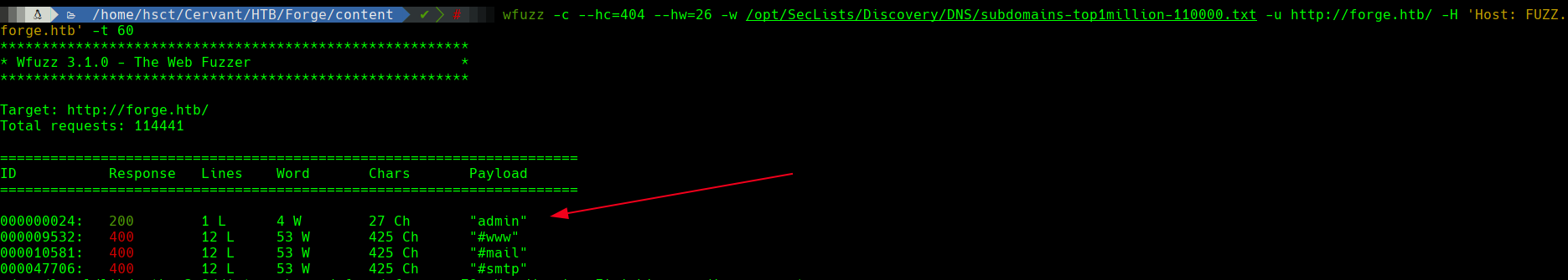 Para el caso de la enumeración de subdominios utilizaremos wfuzz y esta vez si obtenemos resultados positivos.