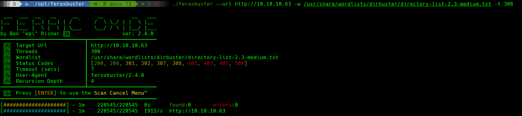 ./feroxbuster --url http://10.10.10.63 -w /usr/share/wordlists/dirbuster/directory-list-2.3-medium.txt -t 300