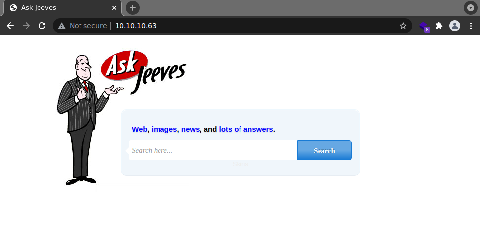 Vemos que esta vez si tuvimos suerte y Feroxbuster nos proporciona la ruta http://10.10.10.63:50000/askjeeves como válida. Consultando el recurso visualizamos lo siguiente.