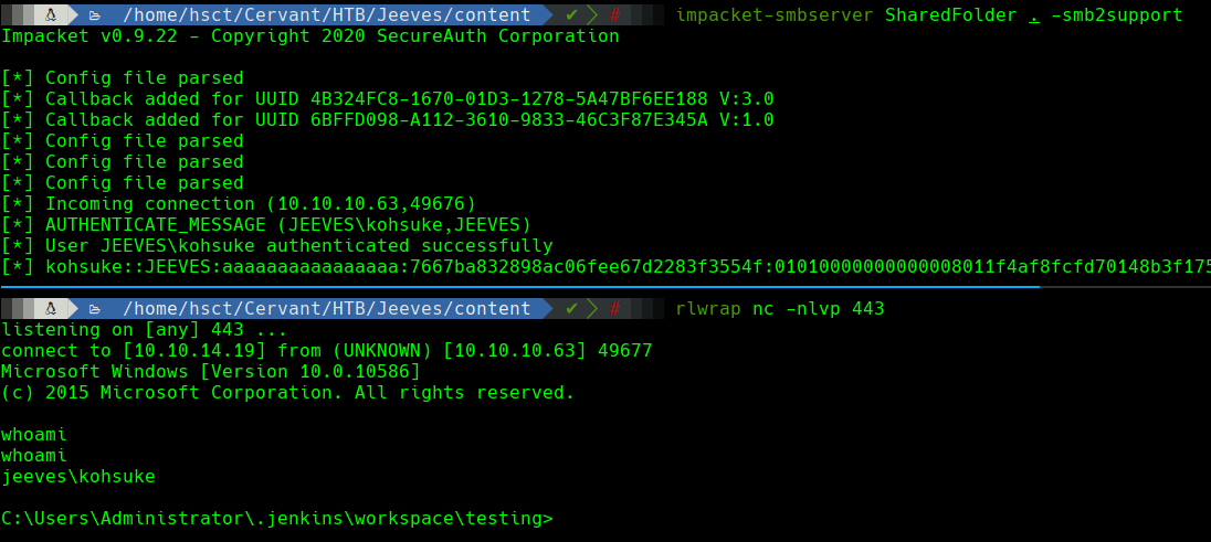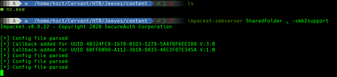 Ya esta vez intentaremos obtener nuestra reverse shell utilizando netcat compartido a través de un recurso en red SMB. Primero disponibilizamos el binario utilizando impacket.