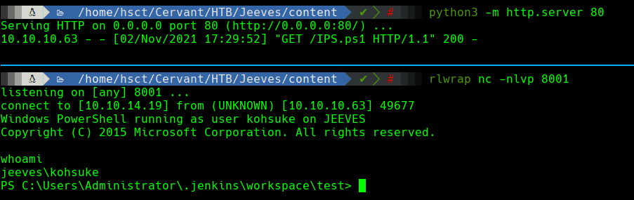 Antes de realizar la escalada de privilegios, realizaremos el mismo proceso anterior para obtener una reverse shell, pero en este caso, usaremos nishang para obtener una consola PowerShell. Estos son los pasos: