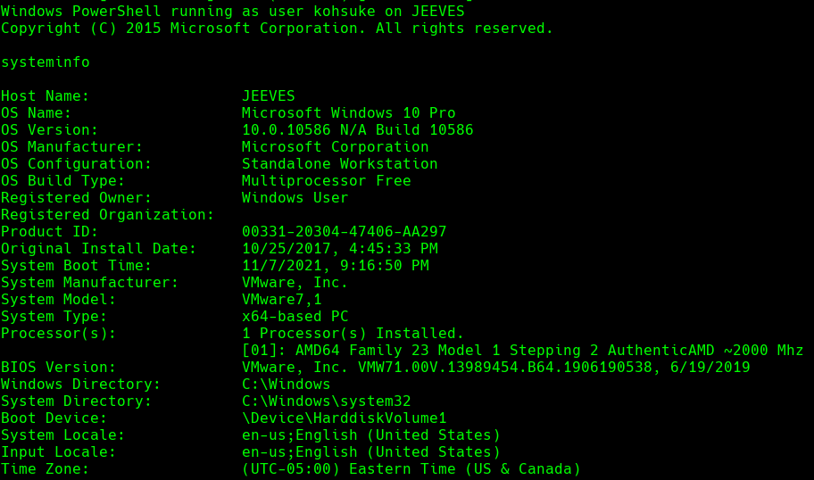 Service Info: Host: JEEVES; OS: Windows; CPE: cpe:/o:microsoft:windows