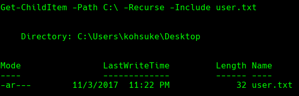 Get-ChildItem -Path C:\ -Recurse -Include user.txt