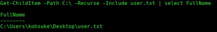 Get-ChildItem -Path C:\ -Recurse -Include user.txt | select FullName