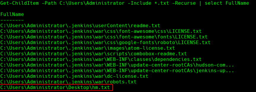 Para esta flag la cosa se complica un poco, ya que no la encontraremos por métodos convencionales. Al buscar por todos los archivos con extensión .txt dentro del home del usuario Administrator encontraremos un archivo interesante.
