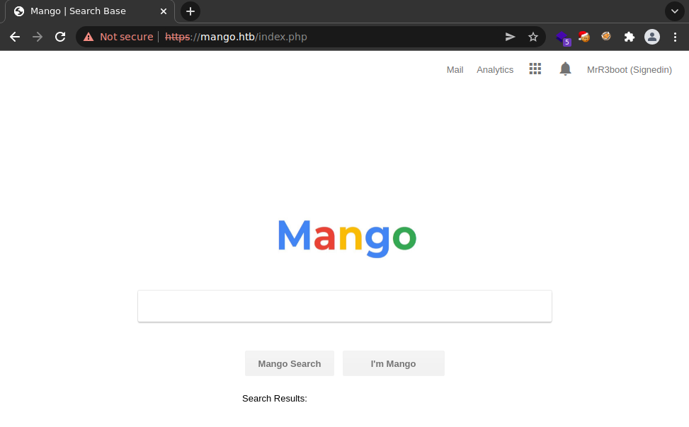 Al consultar mango.htb se visualiza un buscador al estilo de google.