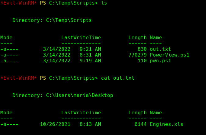Esto nos proporcionará una vía para leer directorios del usuario María, ya que no tenemos la capacidad de cambiar su contraseña o levantar una reverse shell debido a la restricciones de Firewall.