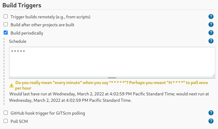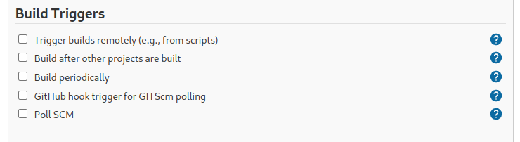 Si volvemos a la configuración de la tarea, podemos ver una sección llamada Build Triggers. Acá vemos dos opciones que nos pueden servir: