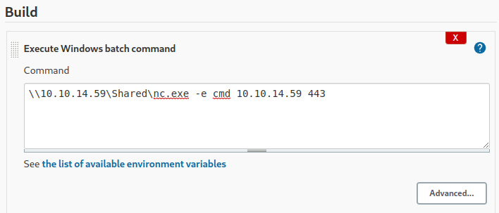 Modificaremos el job y agregaremos una sentencia para obtener una consola utilizando netcat.