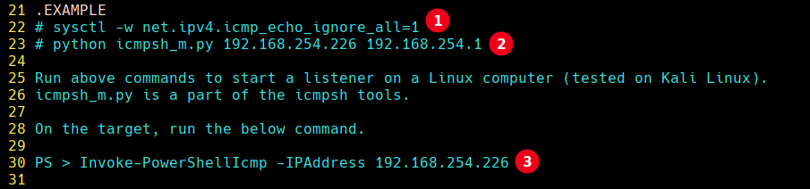 Invoke-PowerShellIcmp -IPAddress 10.10.14.89al final del script para lanzar la consola con una única ejecución.