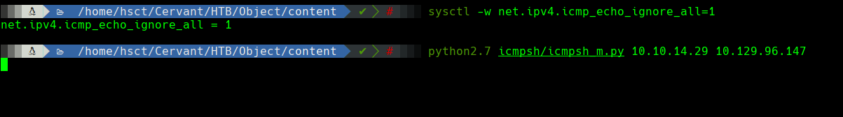sysctl -w net.ipv4.icmp_echo_ignore_all=1en nuestra máquina local. - Descargar la herramienta icmpsh y ejecutarla para obtener el listener de la reverse shell.