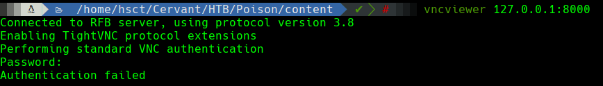 Volviendo atrás, se había conseguido un archivo que parecía estar cifrado, por lo que se podría usar este archivo secret para intentar una autenticación contra VNC.