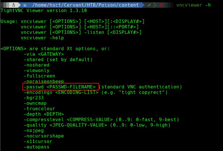 Al buscar otras alternativas y revisar la ayuda de vncviewer se identifica una opción interesante que permite conectar a través de un archivo de autenticación.